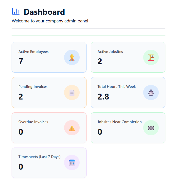 StackBuild is a web-based platform designed specifically for construction companies. It helps manage jobsites, labor hours, payroll, invoices, certificates, and team roles — all in one place. It’s built for contractors, foremen, admins, and even subcontractors.